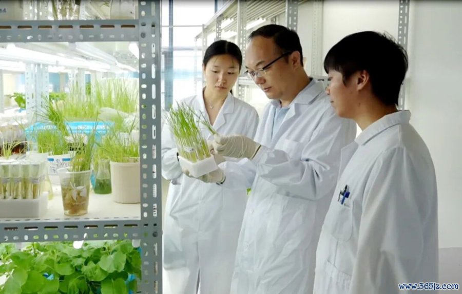 华中农巨流稻团队在不雅察植物样本(图源:央视新闻)